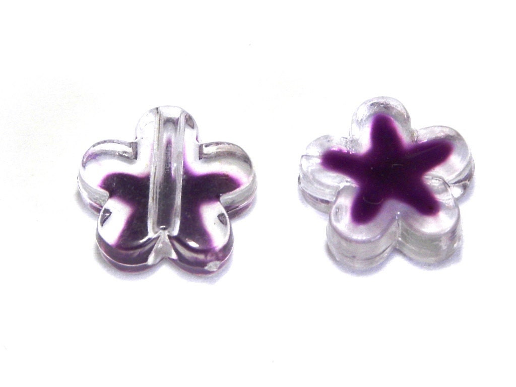 11 mm Medium Plastic Flower Beads - Transparent/Purple - 10 pc