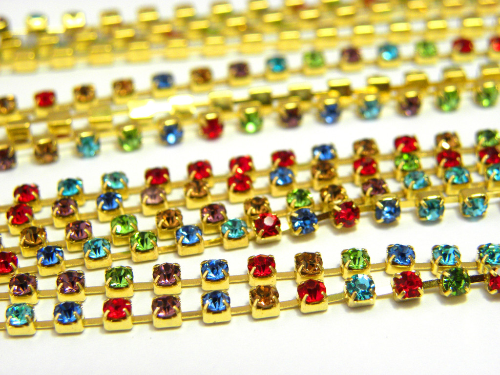 Tags: Beads, bead supplies, glass, cup chain 2 mm, rhinestone chain, strass chain, gold cup chain, multicolour cupchain, 2.5 mm rhinestone cup chain, crystal strass chain