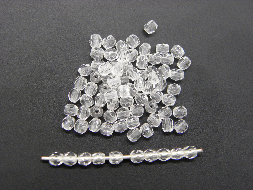 3 mm Round Faceted Fire-polished Czech Glass Beads - Crystal Clear (80 Beads)
