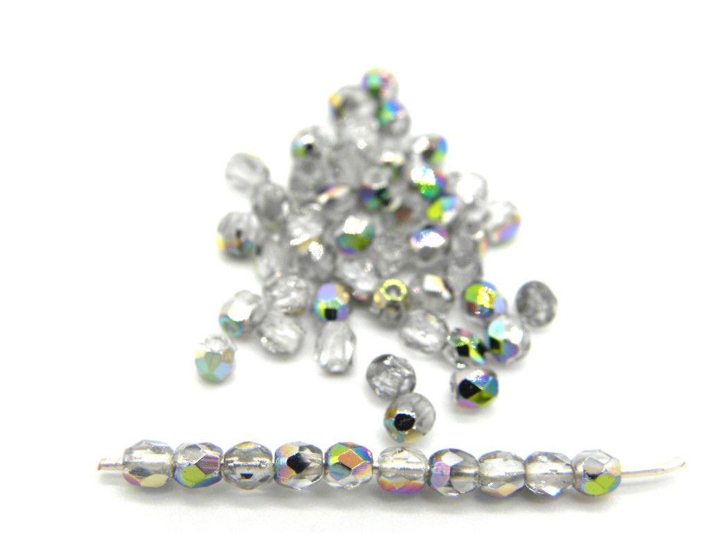 3 mm Round Faceted Fire-polished Czech Glass Beads - Crystal Vitrail Half Coating (80 Beads)