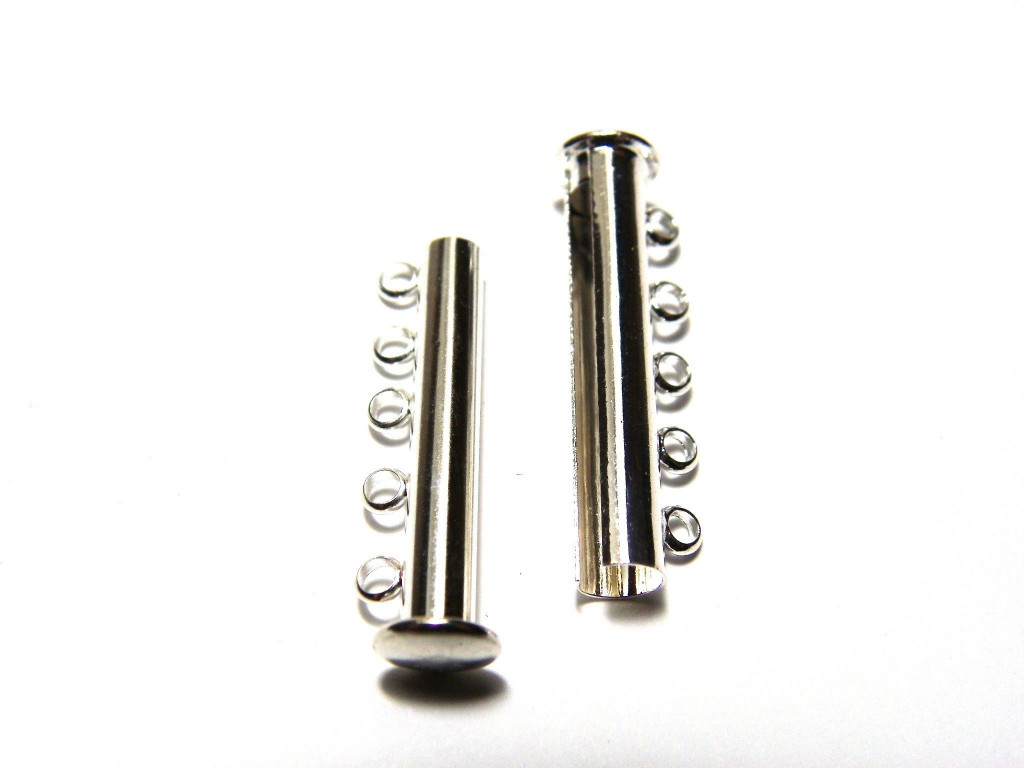 30 mm Silver-plated Magnetic Slide Lock Clasp, Cylindrical 5-Row Sliding Clasp - 5 pc