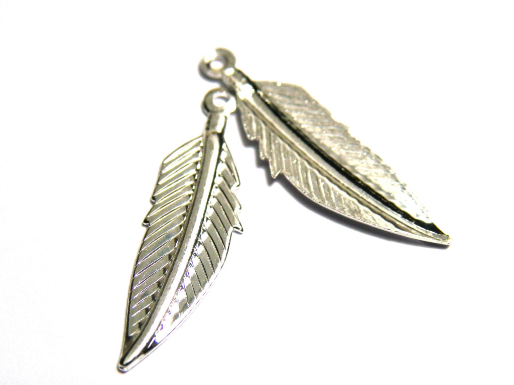 35 mm Feather Metal Alloy Charm, Large Feather Pendant - Silver Plated - 2 or 10 pc