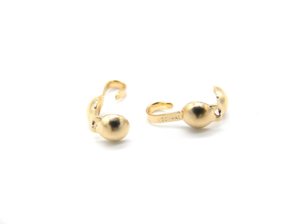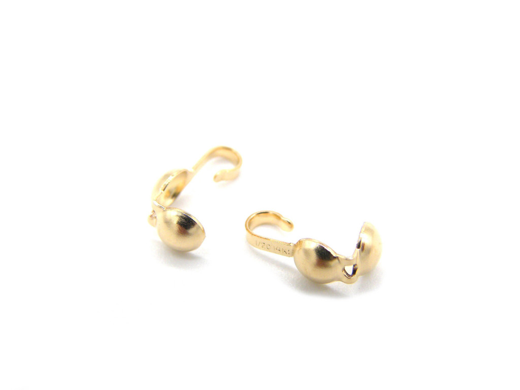 Tags: Jewellery supplies, calottes, necklace ends, calotte crimps, bead tips, knot cups, calotte with loop, calotte crimp ends, clamshell crimps, clamshell calotte, 24K Bead Tips, 4mm bead tips, gold filled calotte