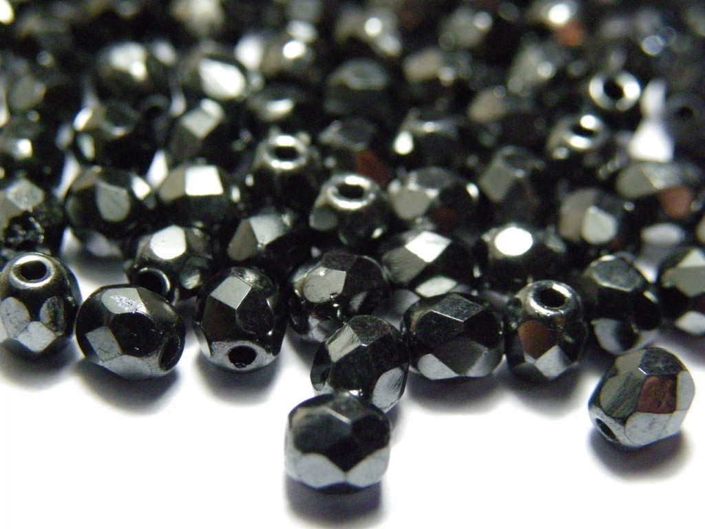 4 mm Round Faceted Fire-polished Czech Glass Beads - Hematite