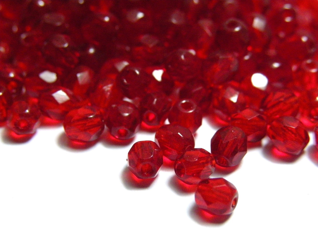 Tags: Beads, bead supplies, glass beads, glass, transparent, firepolished beads, Czech beads, 4 mm, faceted, round, Siam, red