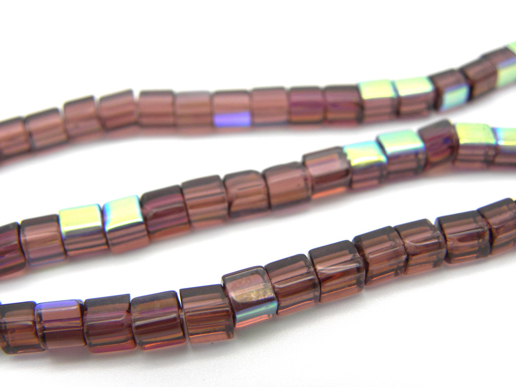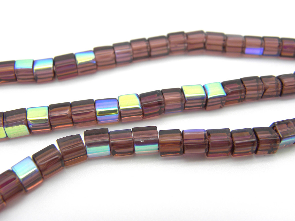4 mm Small Glass Cube Beads - Cubic Glass Beads - Amethyst AB - 1 Strand with approx. 75 beads