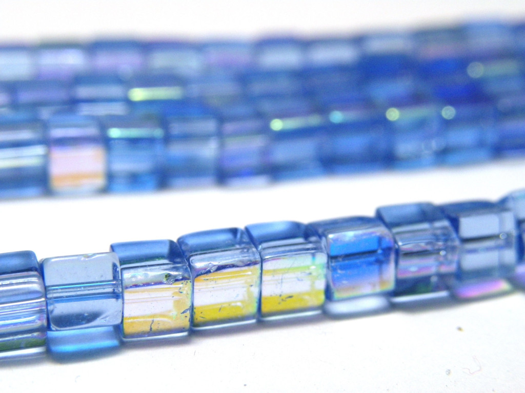 4 mm Small Glass Cube Beads - Cubic Glass Beads - Light Sapphire AB - 1 Strand with approx. 75 beads