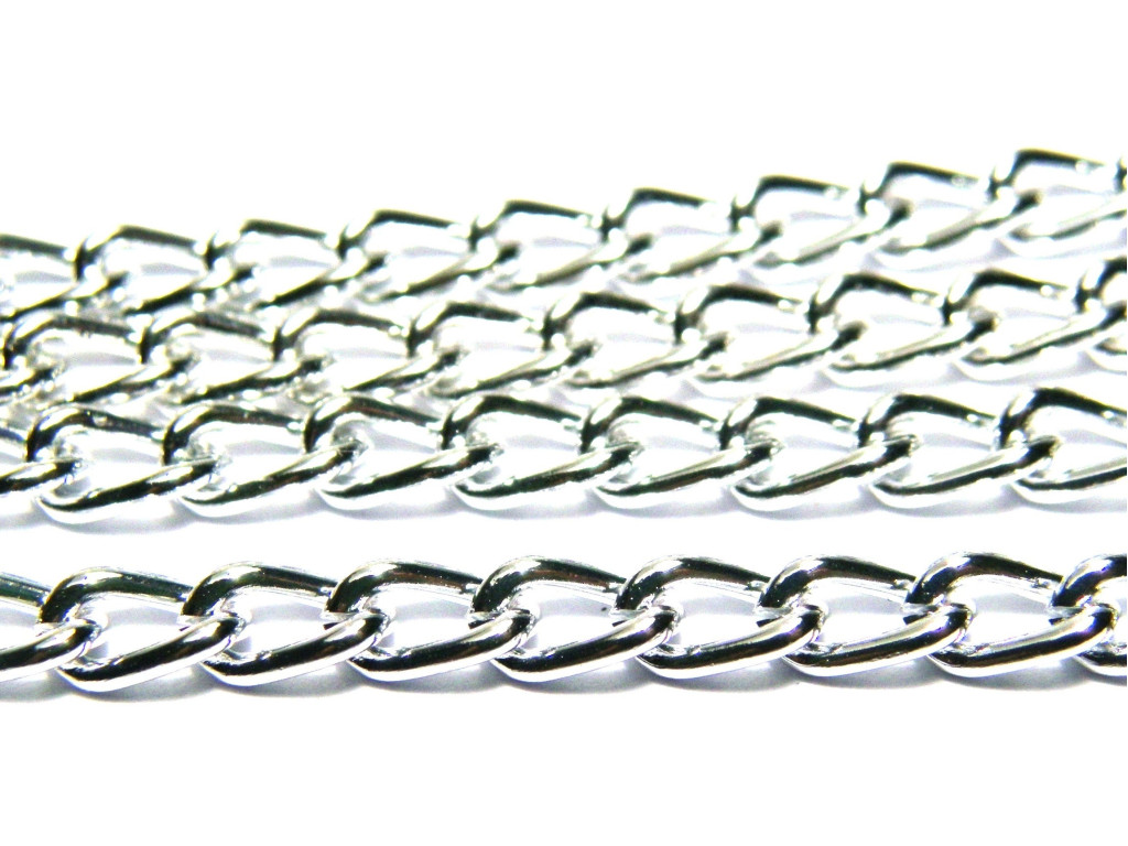Nickel, lead and cadmium free, non-tarnish aluminium twist chain. Please note, aluminium is a soft metal and the links might open if the chain is subjected to heavy loads or pulling. This chain is not made to take loads but rather as a decorative chain.