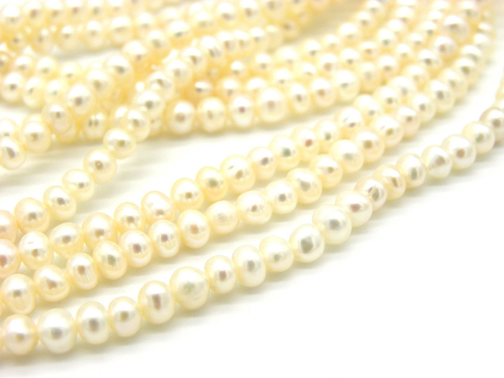 4 x 5 mm Potato-Shaped, Irregular Round Pearls, Freshwater Cultured Pearls - White - 1 Strand or 20 Pearls