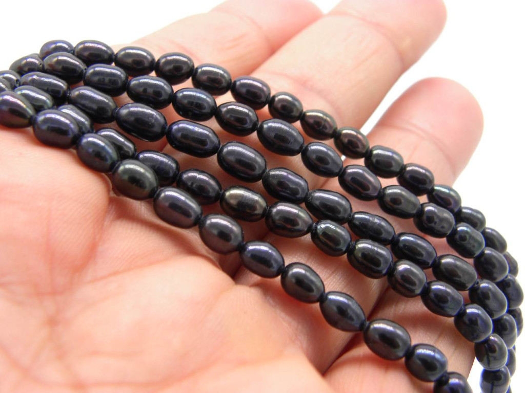 4 x 6 mm Small Rice-Shaped Freshwater Cultured Pearls - Grade A - Peacock Black Colour - 10 Pc.