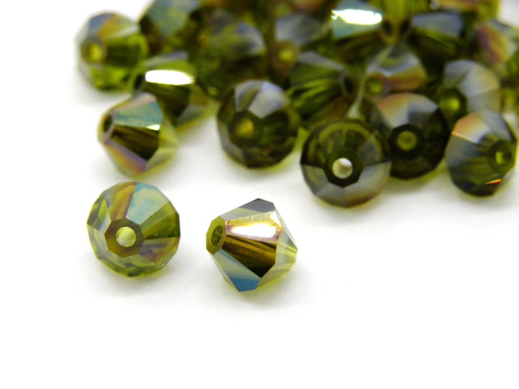Tags: Beads, bicones, 6mm bicones, bicones beads, crystal bicones, MC bicones, Bohemian glass beads, faceted beads, Swarovski 5328, Olivine Celsian, MC Rondell, Green Beads