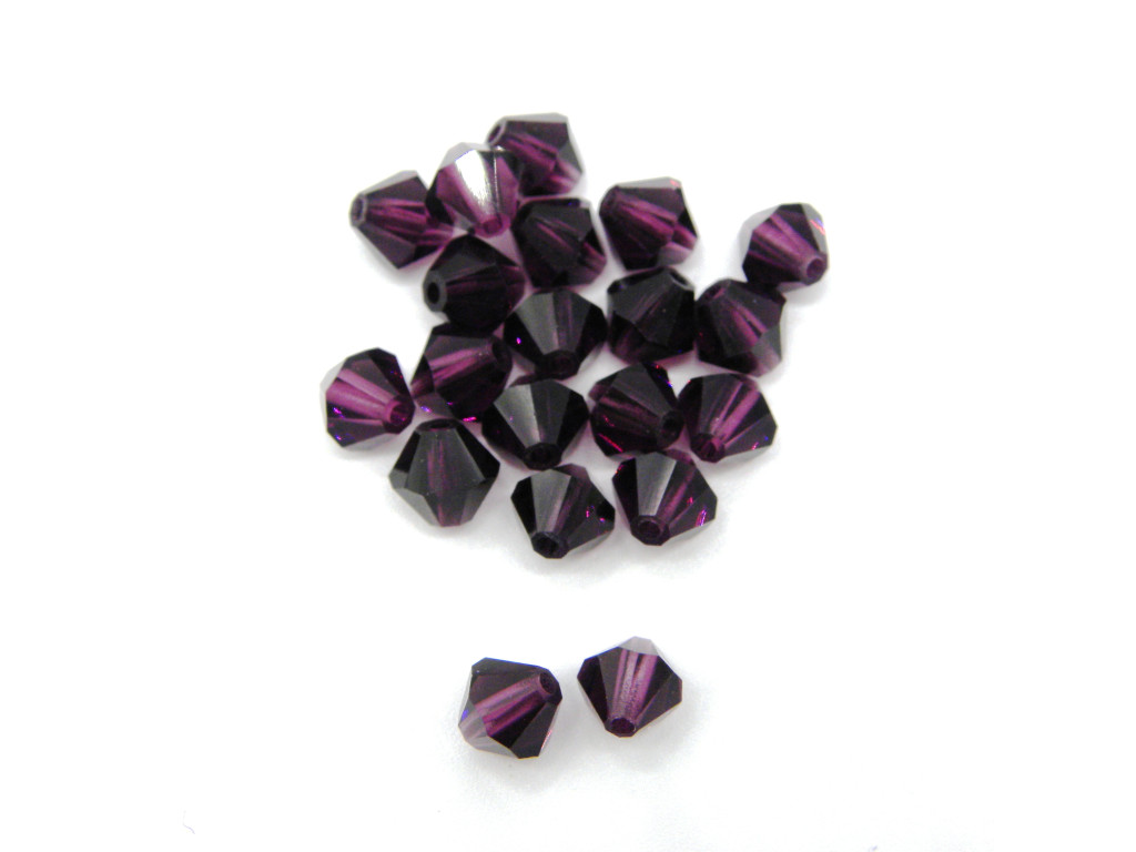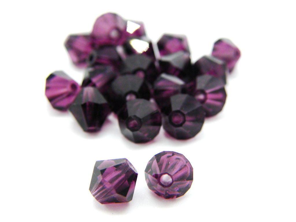 Tags: beads, bead supplies, glass beads, glass, transparent, czech beads, bicones, 6mm bicones, bicones beads, crystal bicones, purple bicones, purple beads, violet beads, large faceted bicone beads