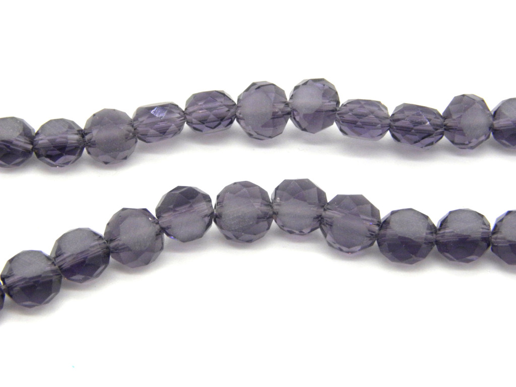6 mm Flat Frosted Glass Beads, Faceted Flat Rondelle Beads - Purple