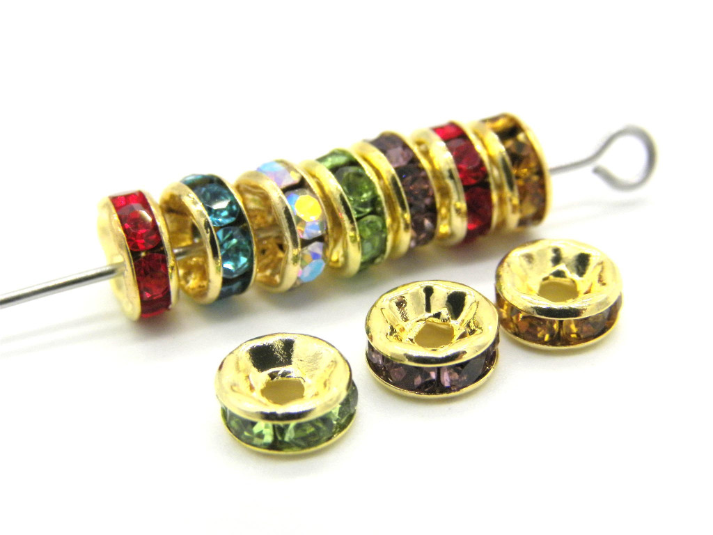 Tags: Jewellery supplies, spacer beads, rhinestone spacers, strass rondelles, round spacers, rondela de strass, arandela strass, wheel spacers, craft supplies, gold rondelles, 6mm spacers, 6mm rondelles
