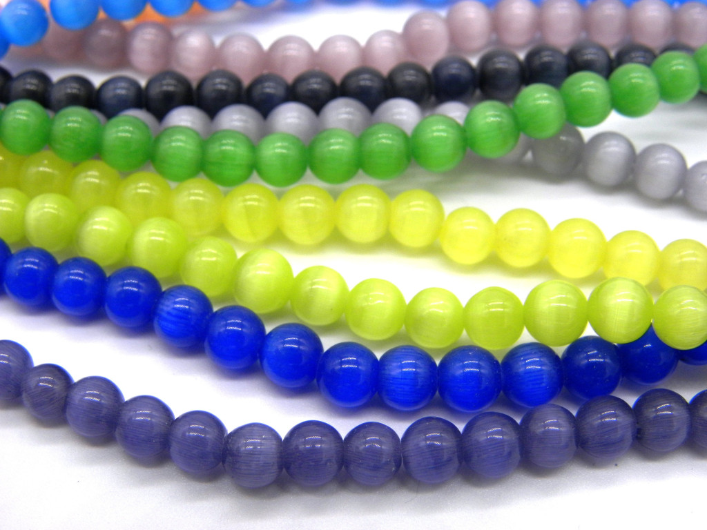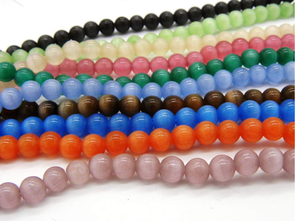 6 mm Round Cat Eye Glass Beads - Choice of Colours (1 Strand of 65+ Beads)