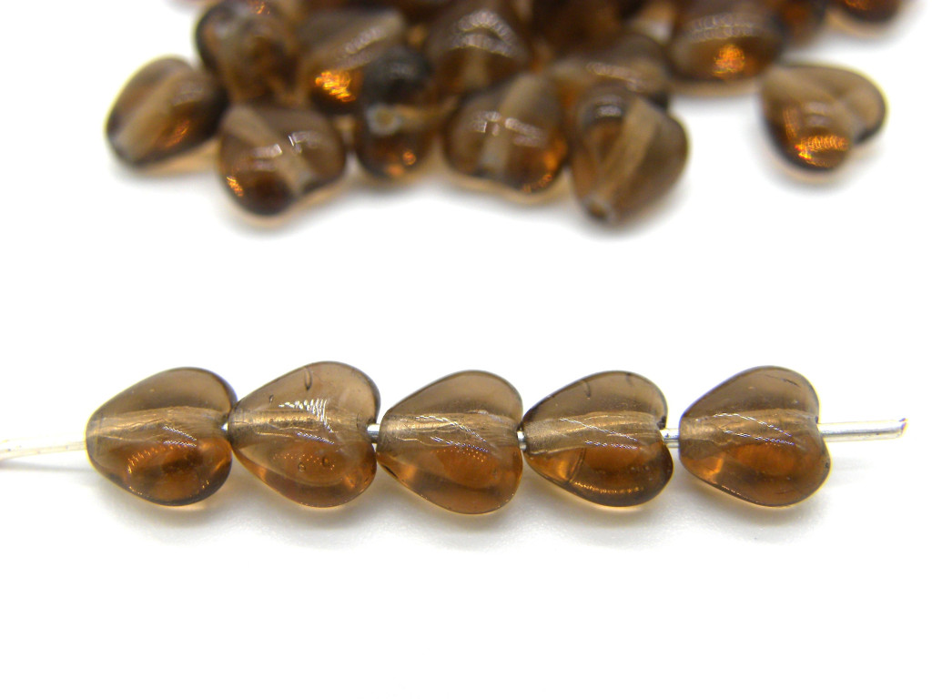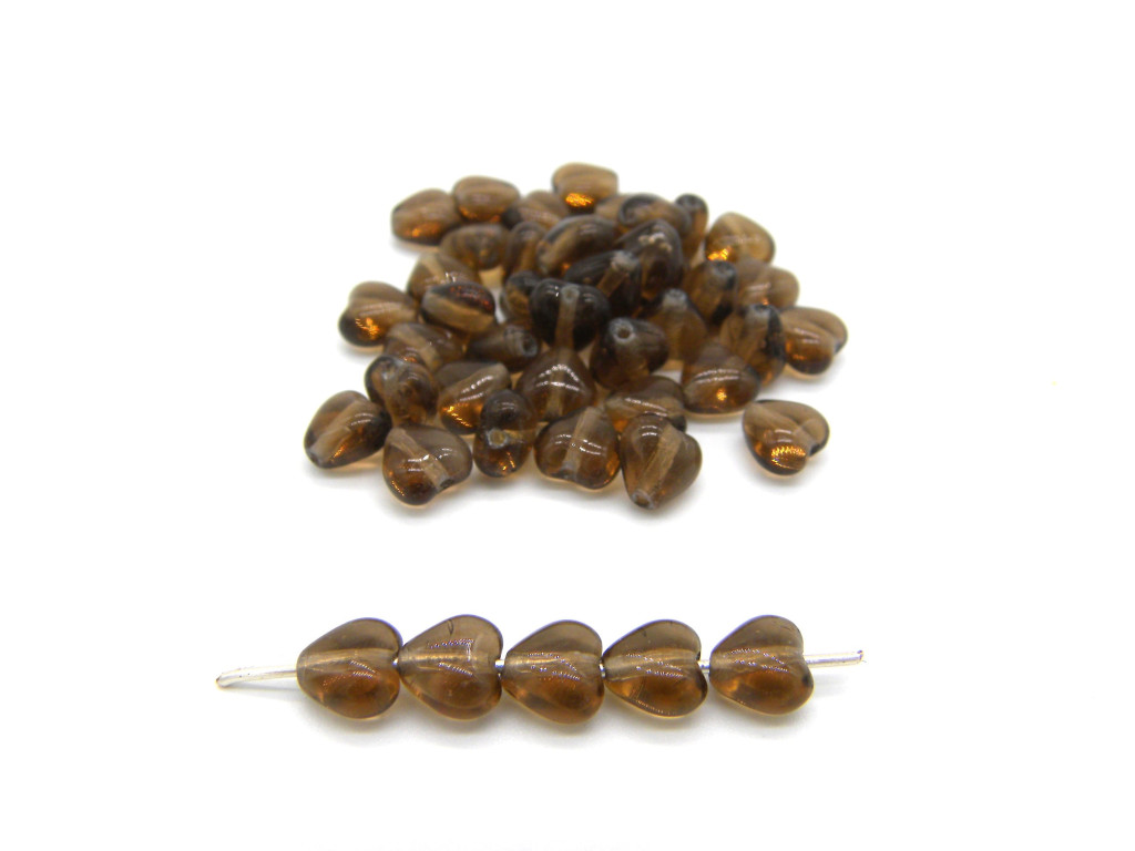 6 mm Small Czech Pressed Glass Heart Beads - Smoky Topaz Brown (20 Pc)