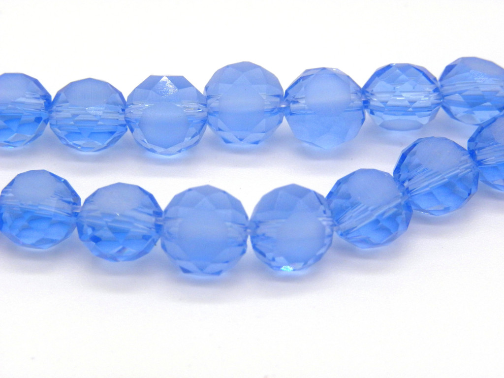 8 mm (0.3 inch) Flat Frosted Glass Beads, Faceted Flat Rondelle Beads - Light Sapphire (Blue)
