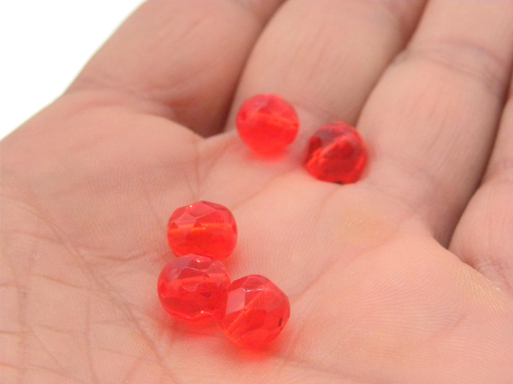 8 mm Round Faceted Fire-polished Czech Glass Beads - Hyacinth Red-Orange - 20 or 60 pc