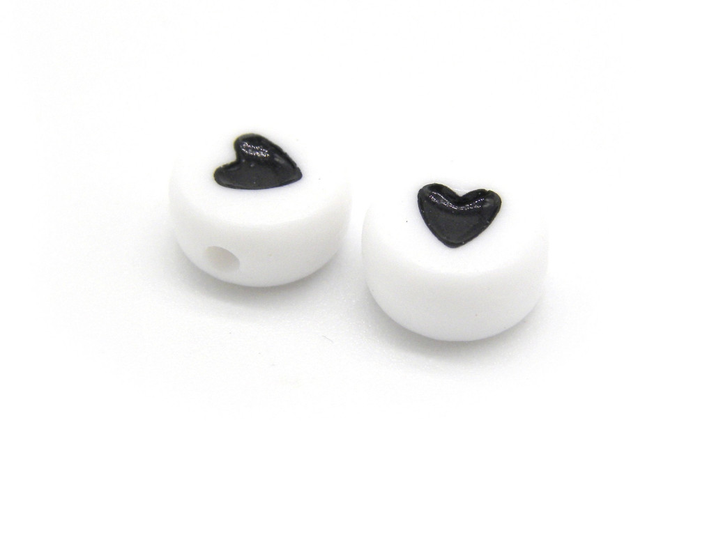 Tags: beads, plastic beads, letter beads, alphabet beads, acrylic beads, letters, black letter beads, Black and White, Heart beads, Heart spacer beads, Black heart beads, 7 mm heart beads, Round heart white, 7 mm round plastic beads with black heart, white beads with black heart