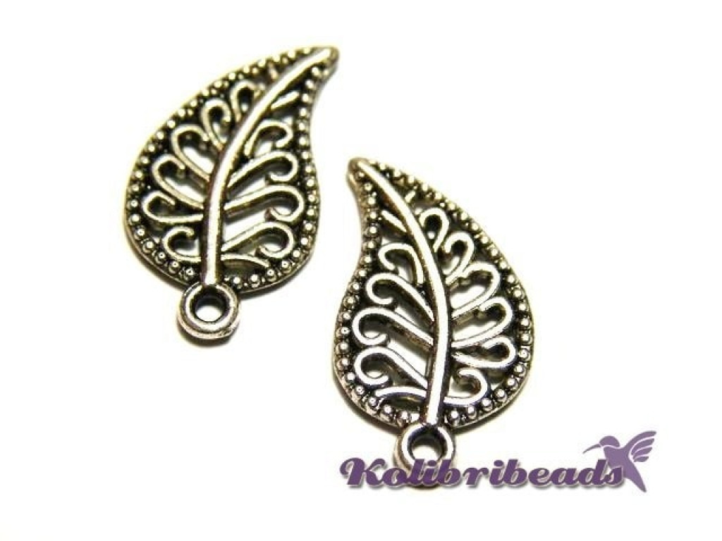 19 mm Vintage Filigree Leaf Charm, Leaf Pendant - Antique Silver or Antique Gold (2 pc.)