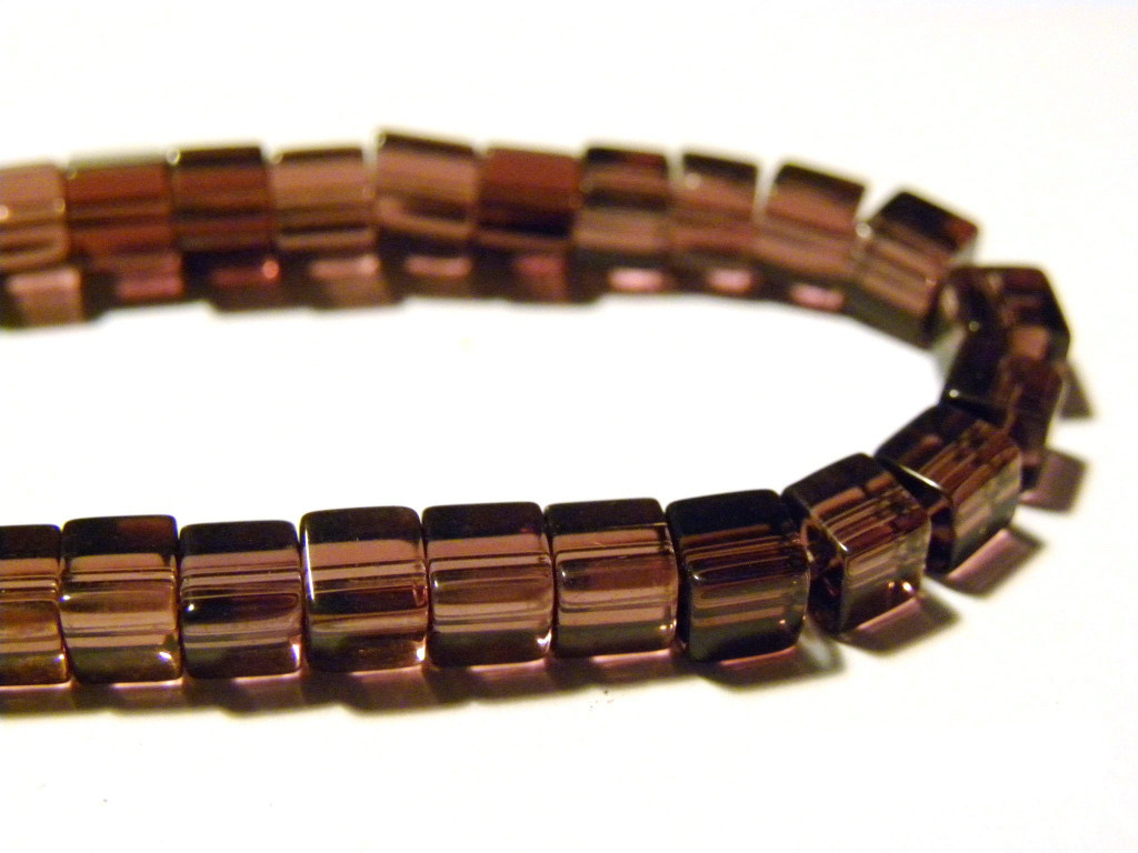 4 mm Small Glass Cube Beads - Cubic Glass Beads - Amethyst (Purple) - 1 Strand with approx. 75 beads