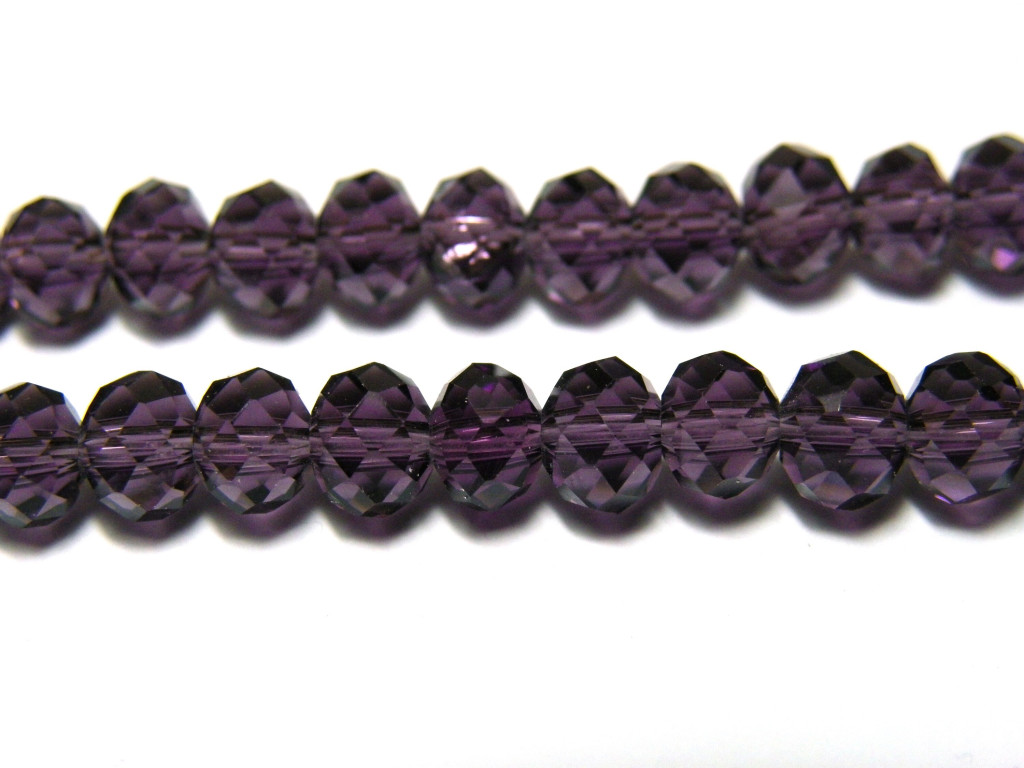 6 mm Faceted Flat Round Glass Beads (Rondelle Beads) - Purple