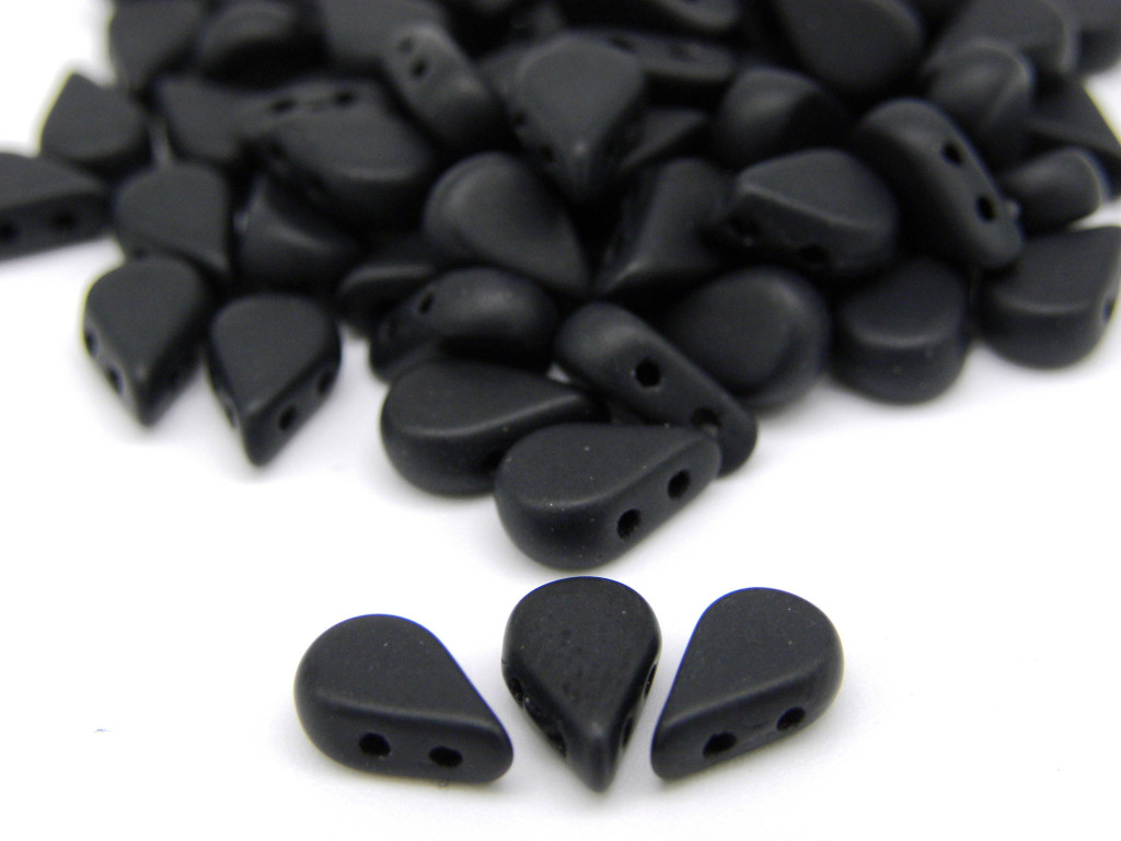 Amos par Puca® - Jet Black Mat - 10g (Approx. 53 beads) - Tear Drop-Shaped 2-hole Czech Beads (5.5x2.5mm)