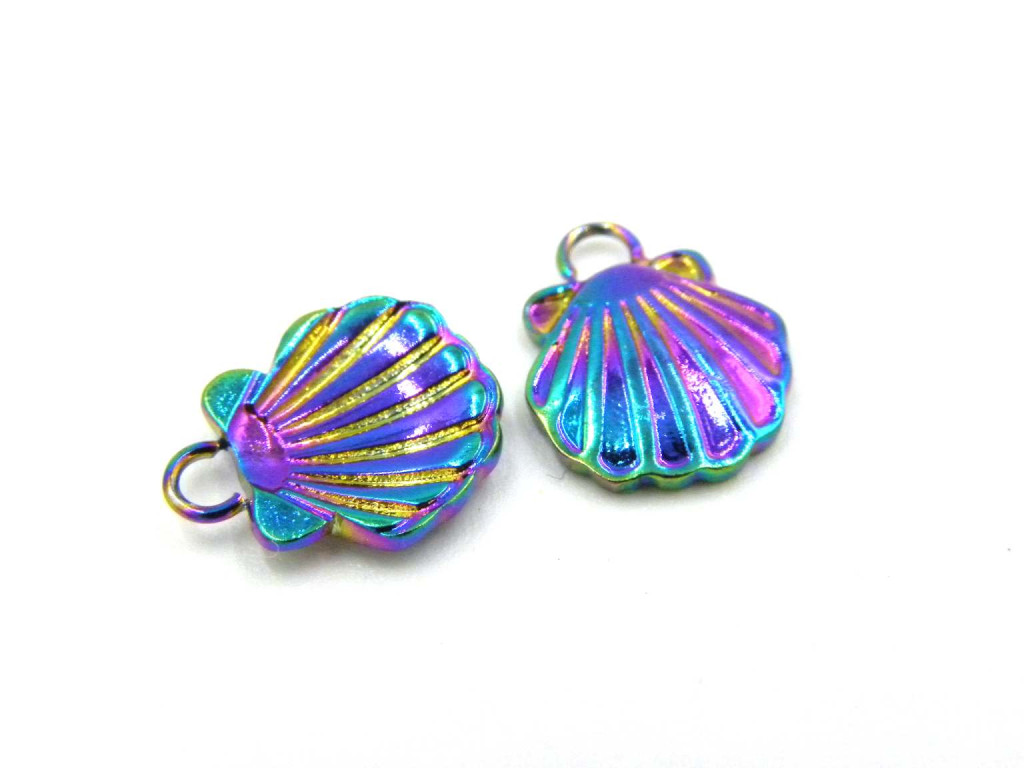 12 mm Small Rainbow Stainless Steel Seashell Charm Pendant - 2 pc