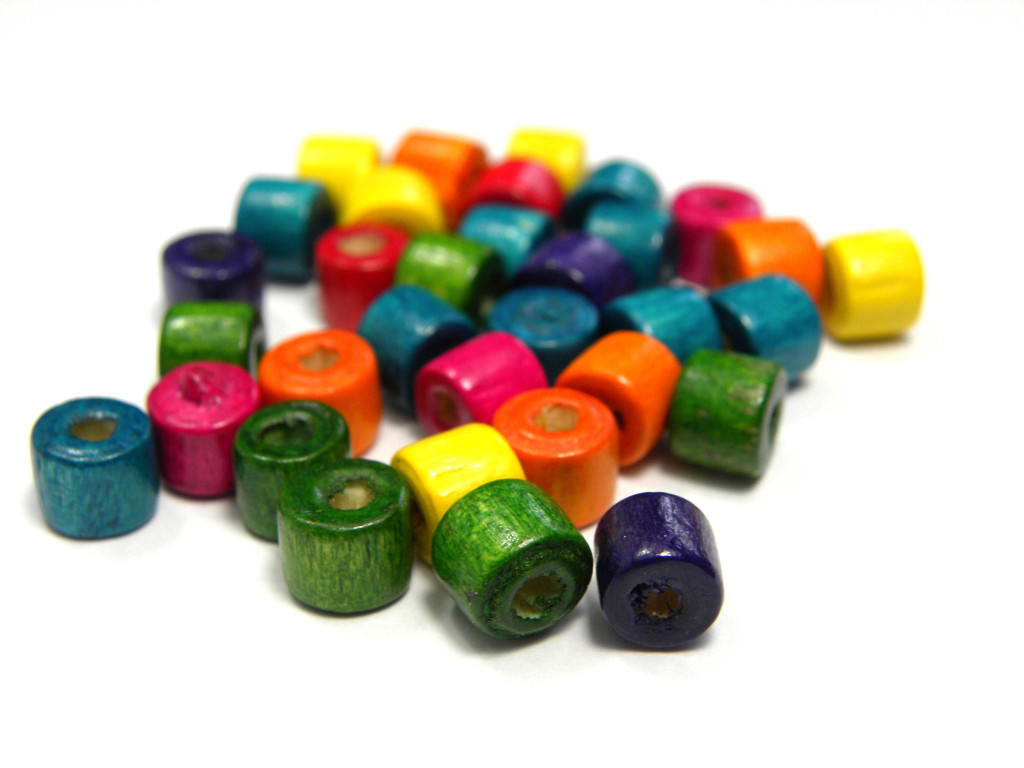 7 mm x 6 mm Wooden Cylinder Beads, Wooden Barrel Beads - Mixed Colours - 100 pc.