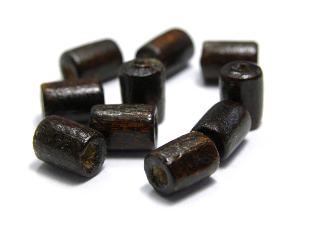 8 x 5 mm Wooden Cylinder Beads - Mixed Colours, Brown or Natural - 100 pc.