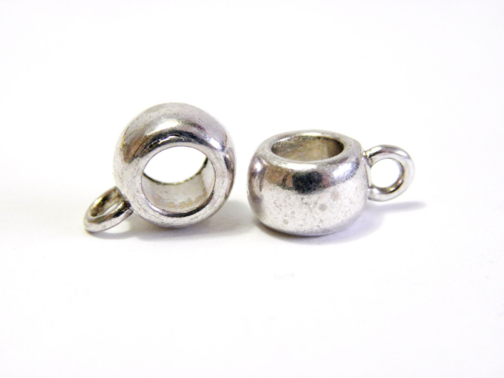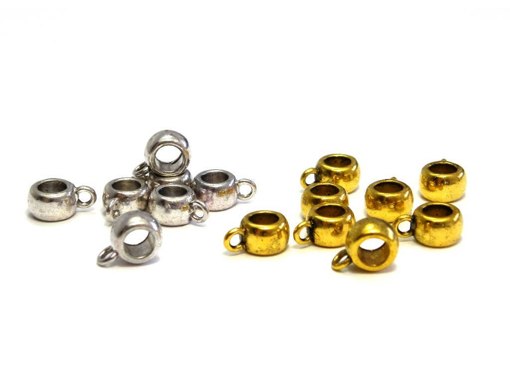 11.5 mm Round Metal Charm Hanger Bail Bead - Antique Silver or Gold