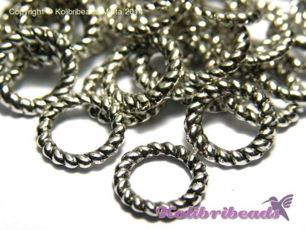 9.5 mm Large Corrugated Closed Linking Rings - Antique gold or silver - 50 pc