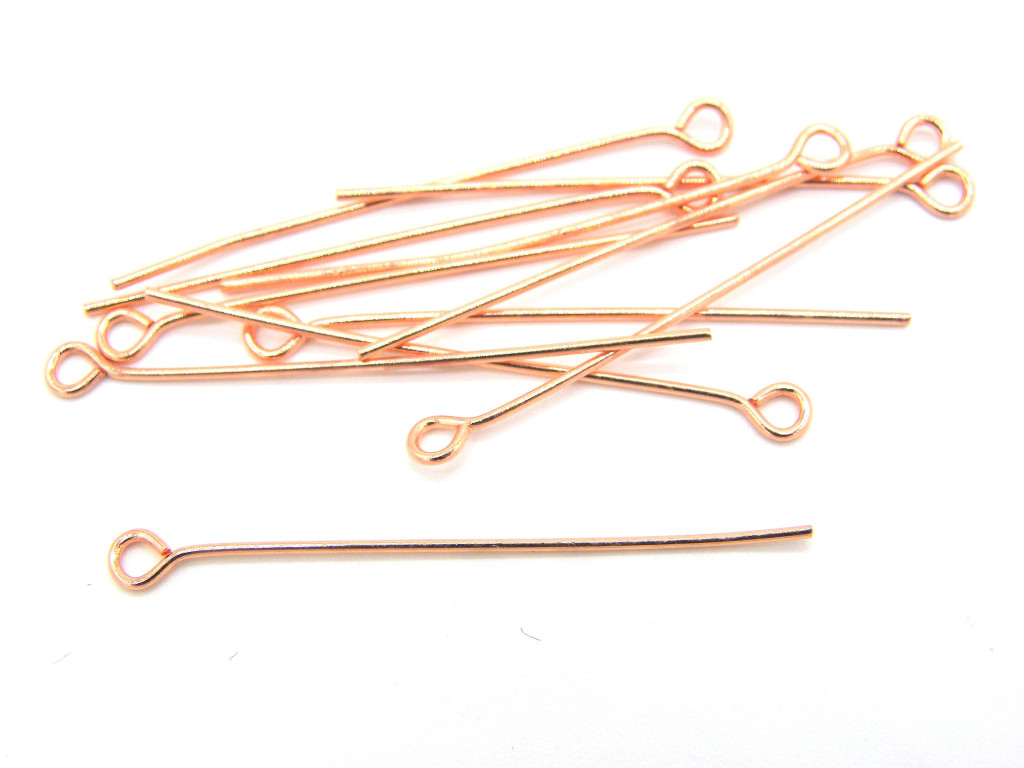 Nickel free eye pins for jewellery making. These silver, gold or rose gold eyepins are very strong and ideal for medium to large beads. They might be too thick for tiny beads smaller than 4 mm.
