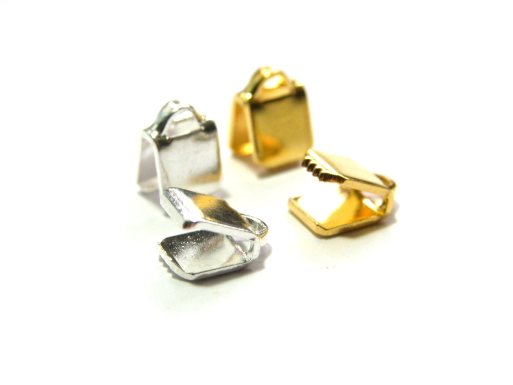 Ribbon crimp ends for all types of ribbon and flat leather.