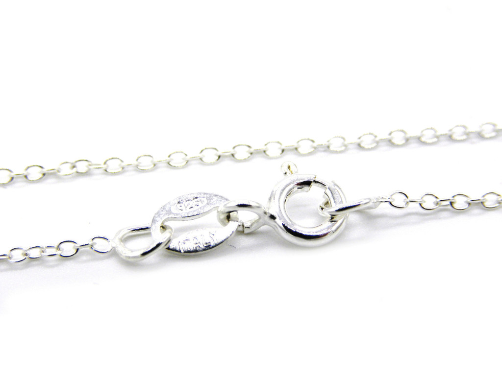 Perfect sterling silver chain for your necklaces. This sterling silver necklace chain is fine and will go through most rings and pendant bails. This chain is very delicate so do not use too much force to open the clasp.