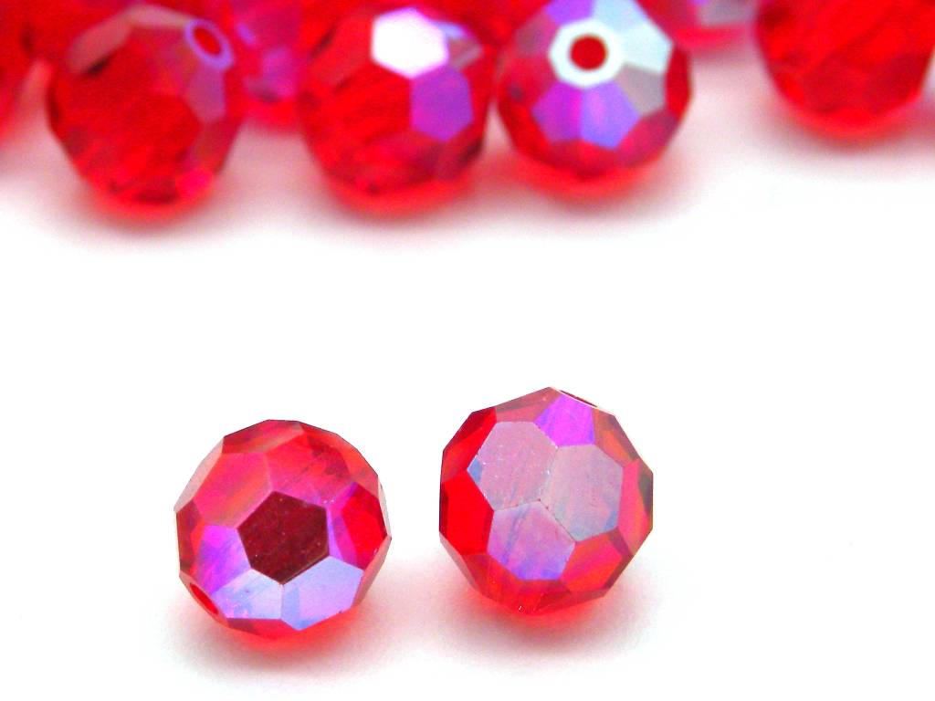 10 Stk. Tschechische Runde Facettierte MC Kristallperlen 6 mm - Light Siam Ruby AB