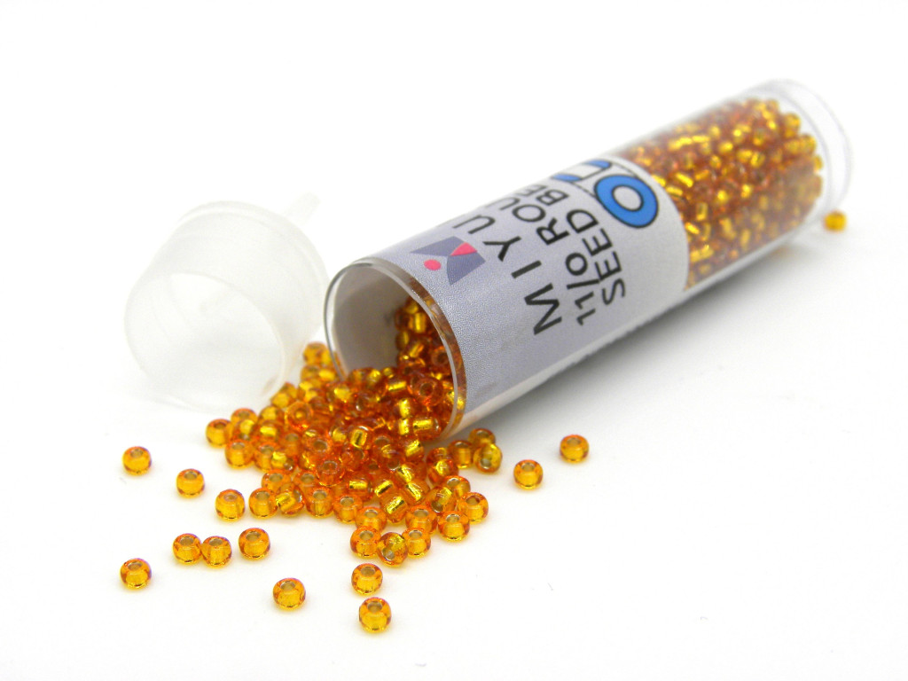 11/0 (2 mm) Runde Miyuki Rocailles (8,5 g Röhrchen) - Silver Lined Amber Gold (11-94261)