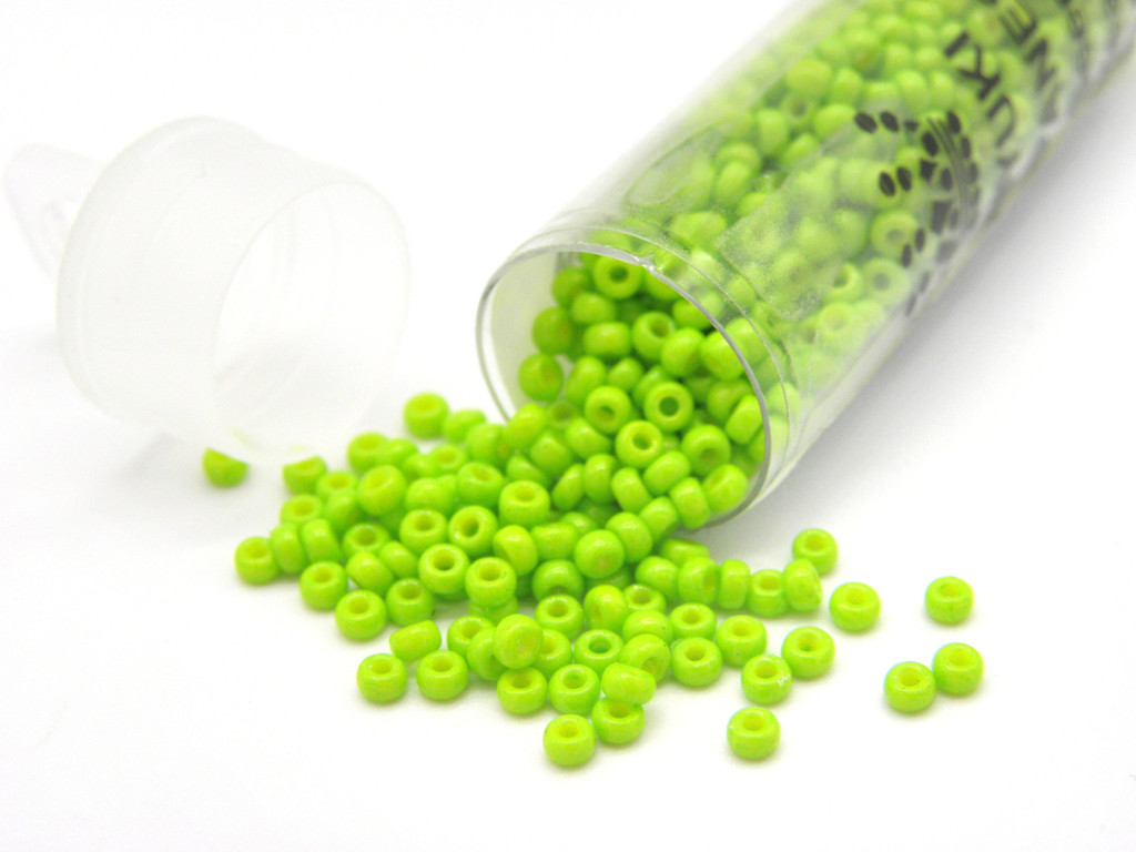 11/0 (2 mm) Runde Miyuki Rocailles (8,5 gr Röhrchen) - DURACOAT OPQ Dyed Neon Green (11-94471)
