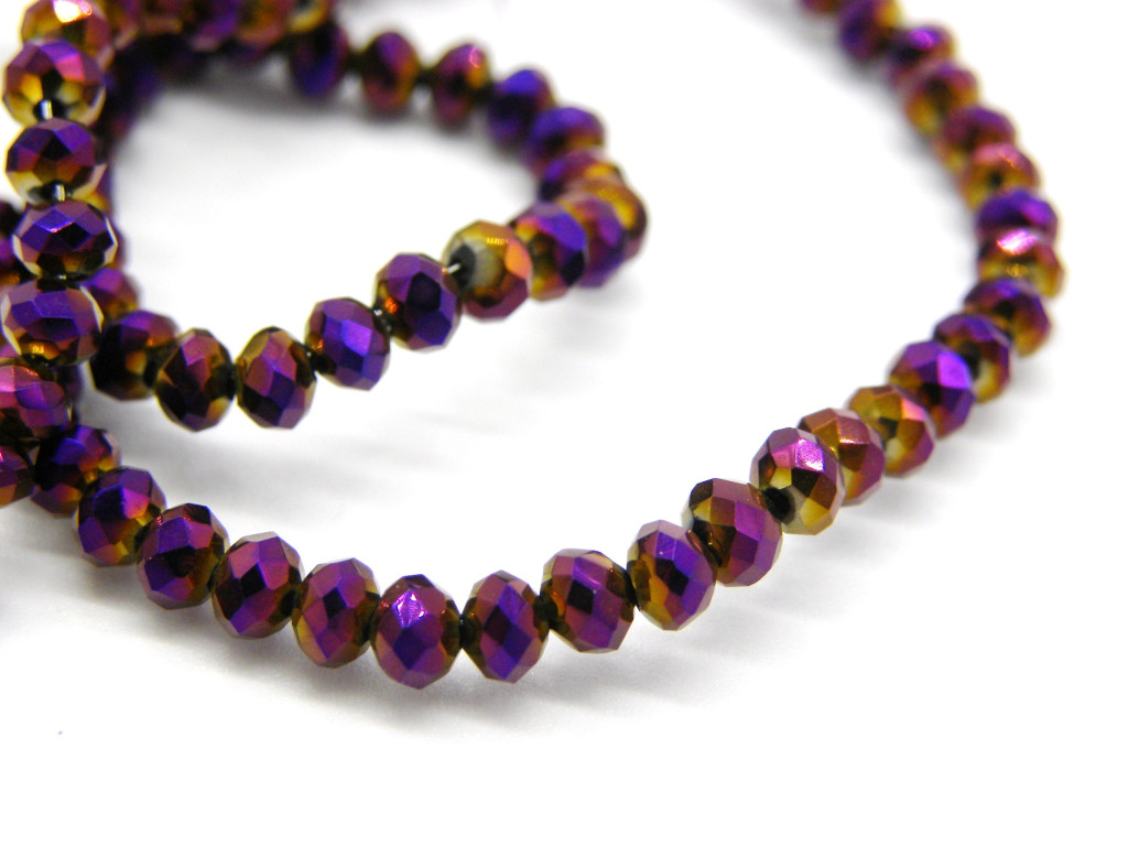 2,5 mm Facettierte Mini Glasrondelle - Messing - Lila/Gold Galvanisiert