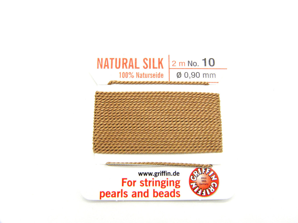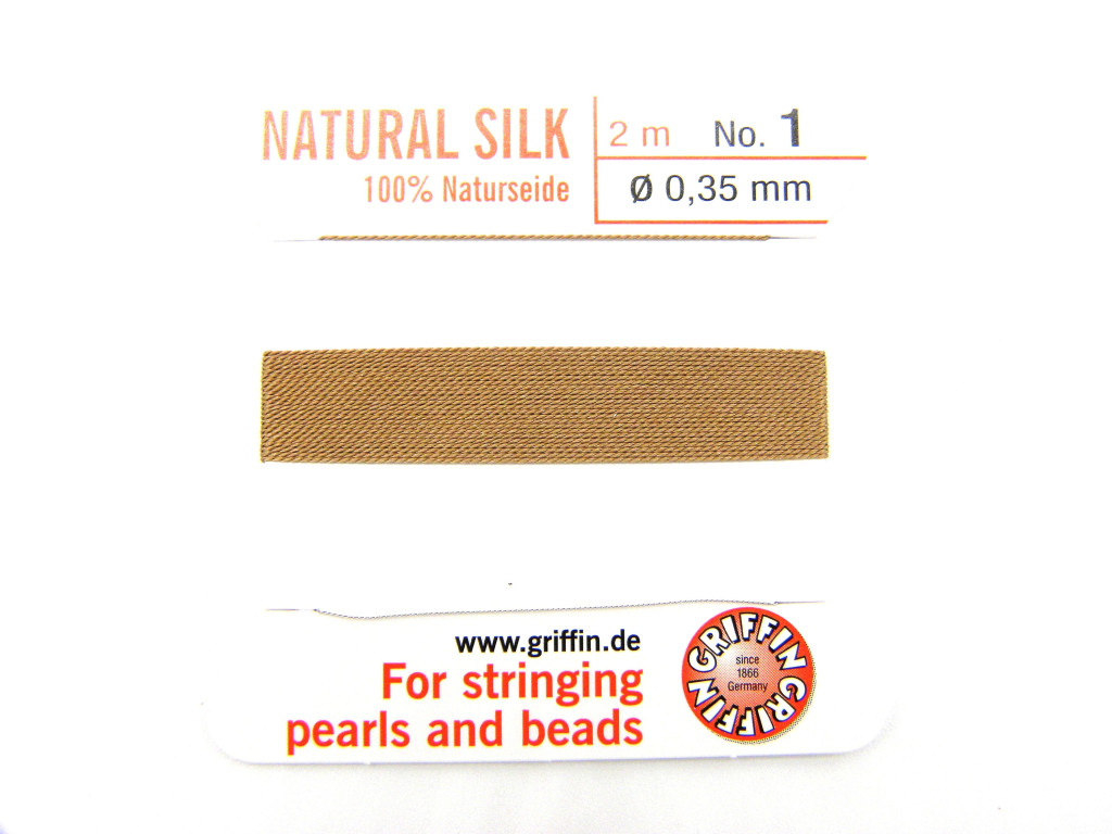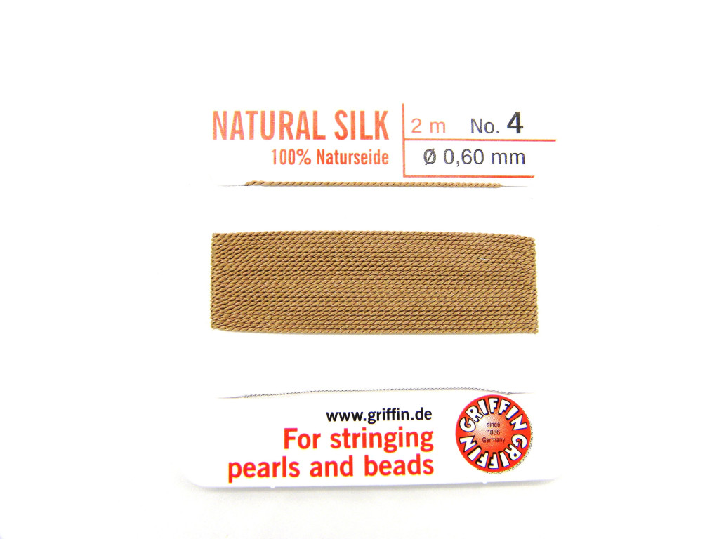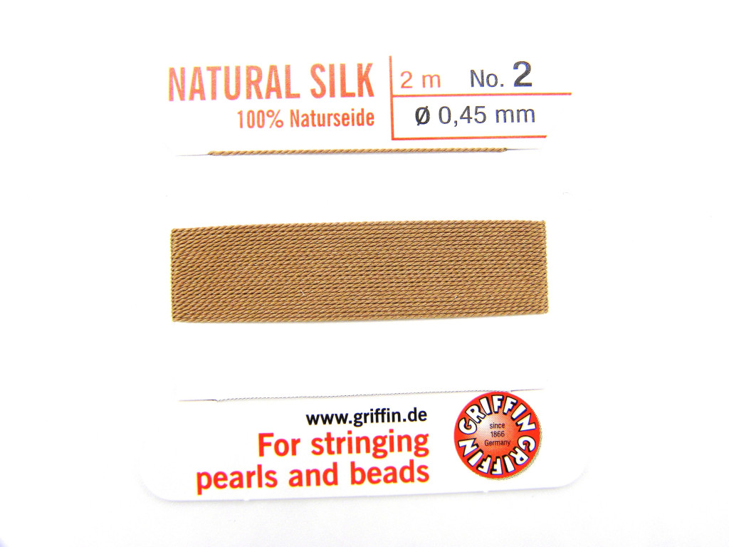 2 m Griffin Natural Silk Bead Cord Perlseide mit Nadel - BEIGE (alle Größen)