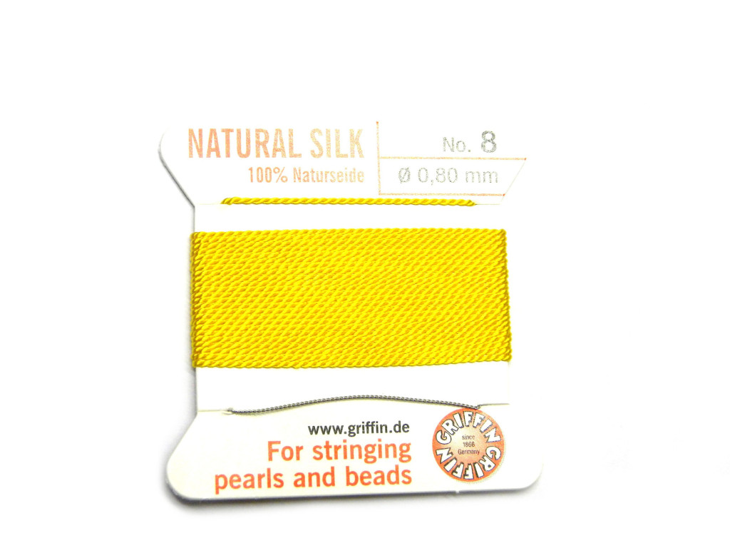 2 m Griffin Natural Silk Bead Cord Perlseide mit Nadel - HELLGELB (alle Größen)