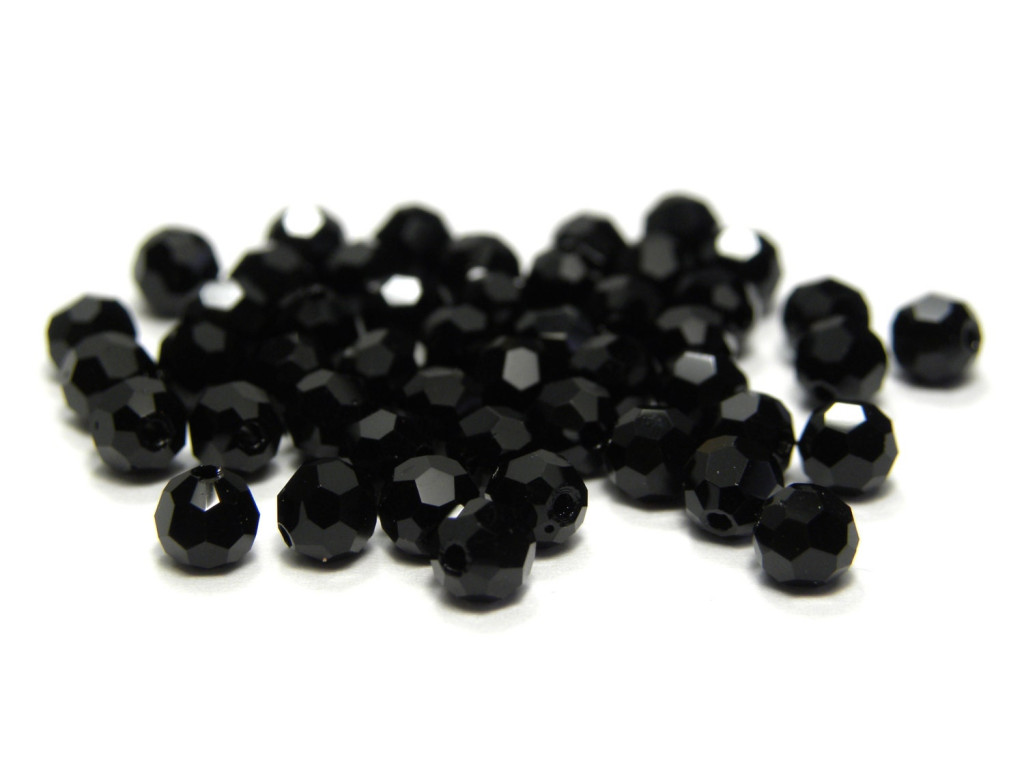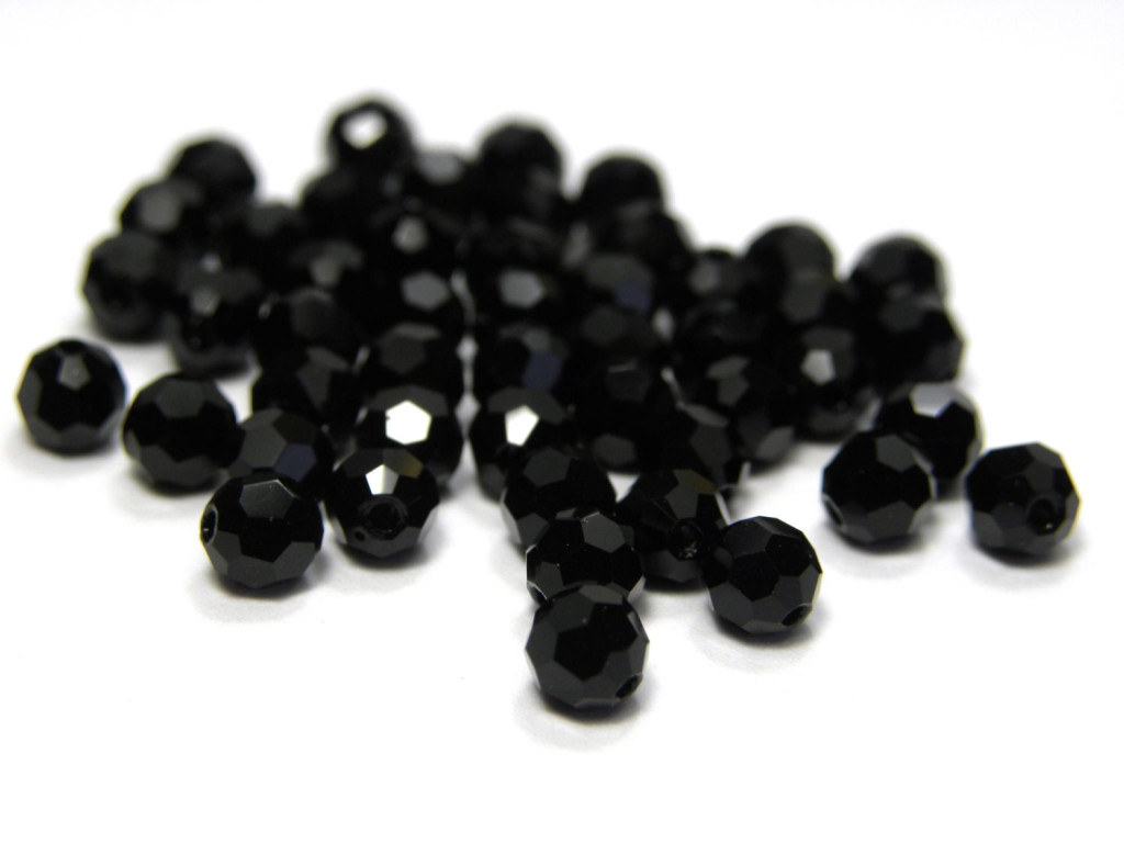 Schnellsuche Perlen, Glasperlen, Glas, transparent, Böhmisches Glas, Tschechische Perlen, rund, facettiert, Kristallperlen, Jet, schwarz
