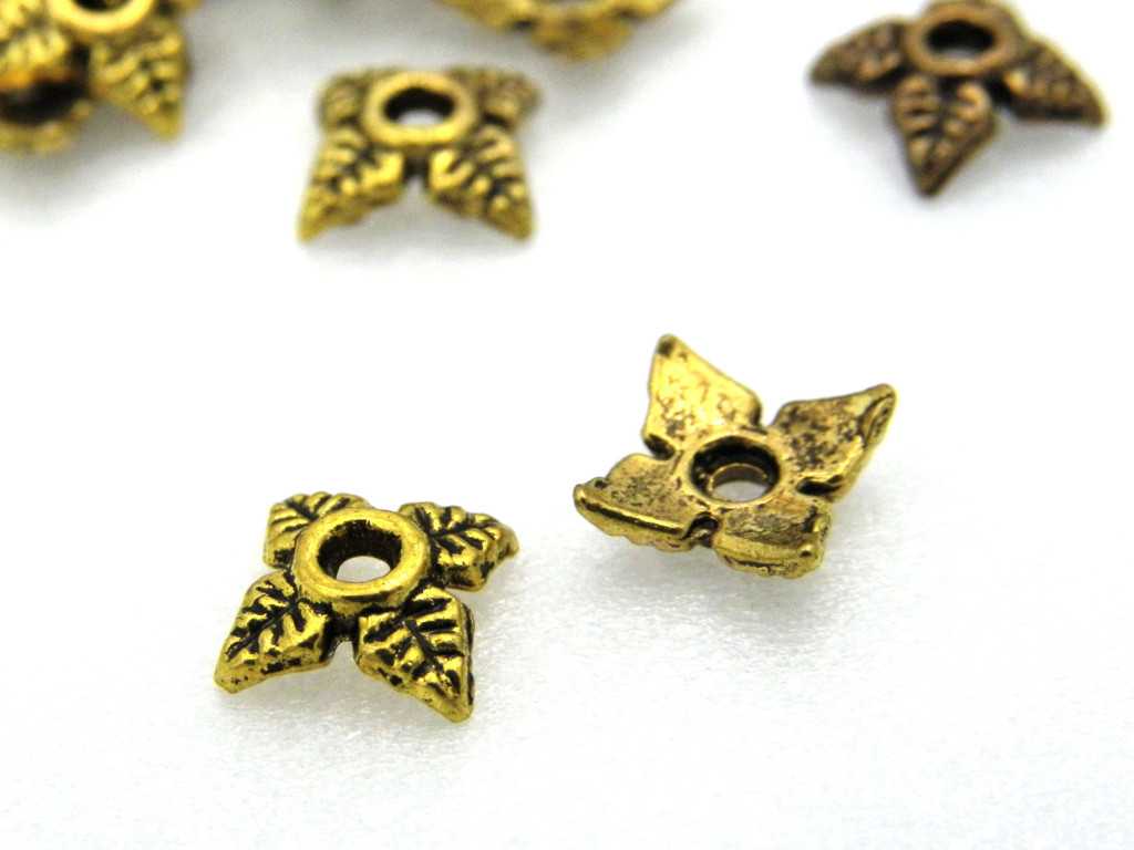 25 St. Kleine florale Perlkappen 6 mm - Altgold