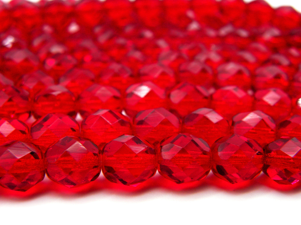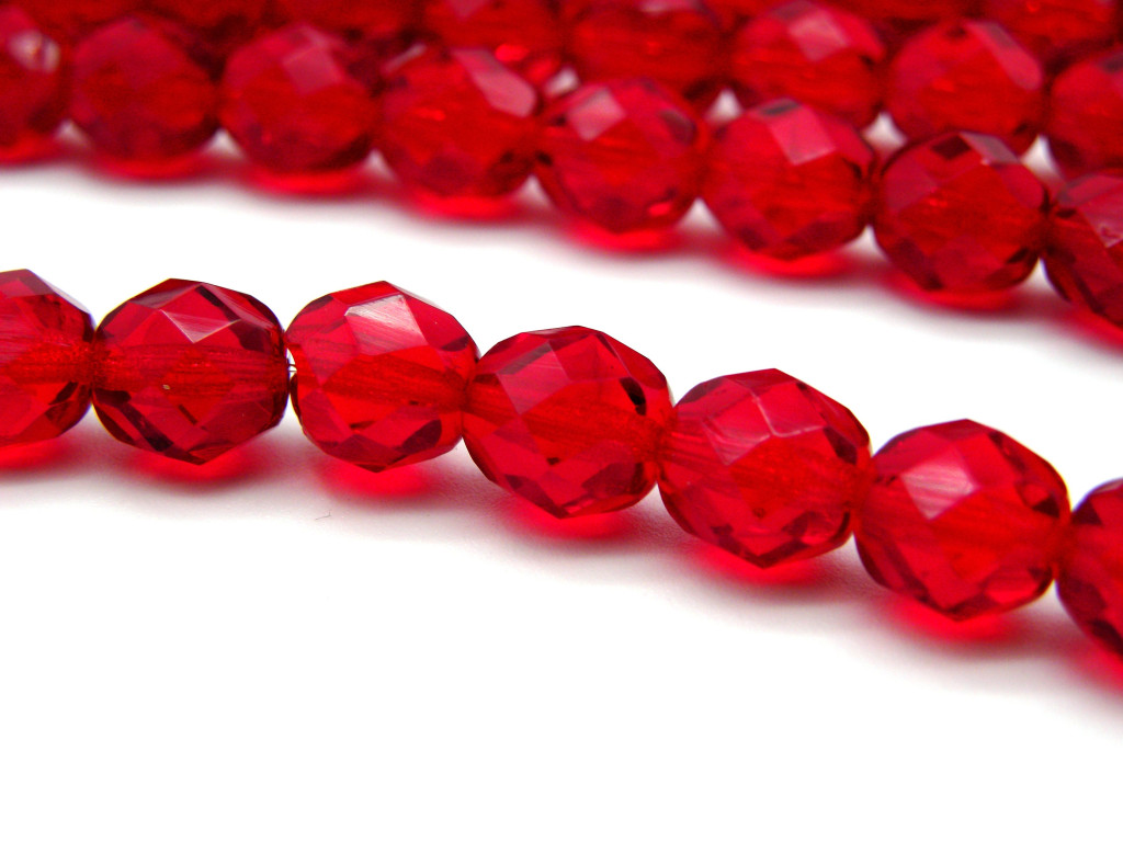 25x Tschechische feuerpolierte Glasschliffperlen 8 mm - Rubinrot