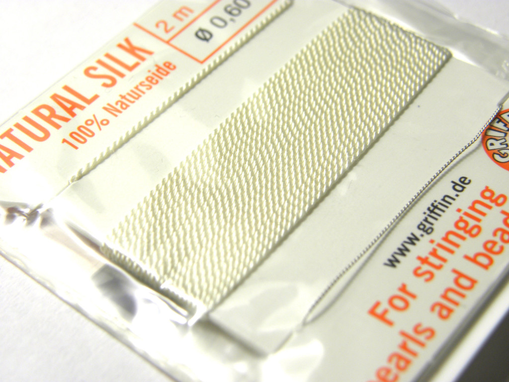 Hochwertiges, reißfestes Garn aus Naturseide zum Perlenfädeln mit Nadel.