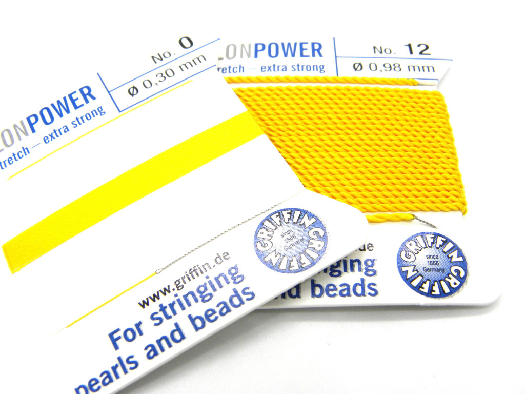 2m Griffin Nylon Power Bead Cord Perlseide mit Nadel - Hellgelb (alle Größen)