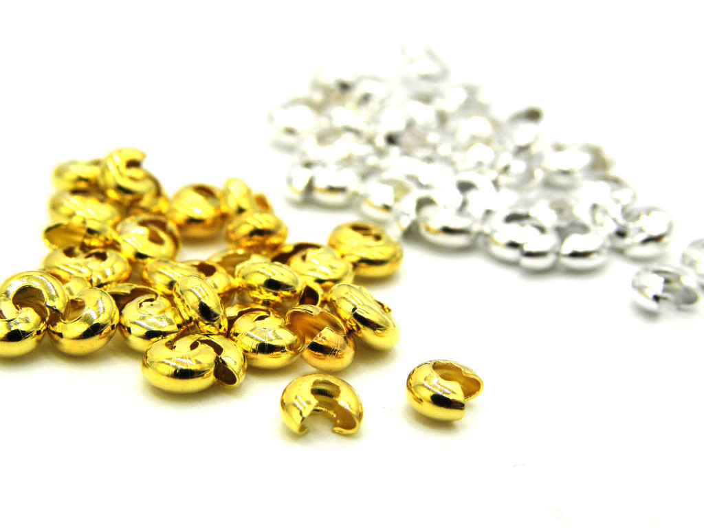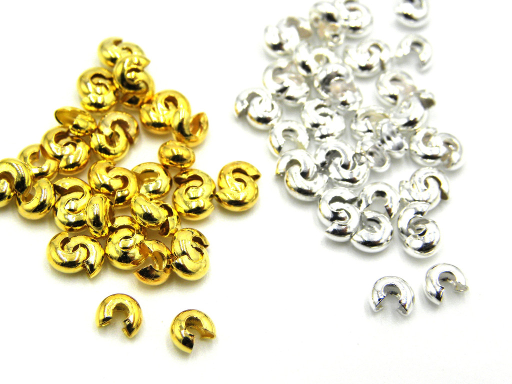 3mm Crimp Cover Perlen für Quetschperlen - Vergoldet oder versilbert (10 oder 50 Stk.)