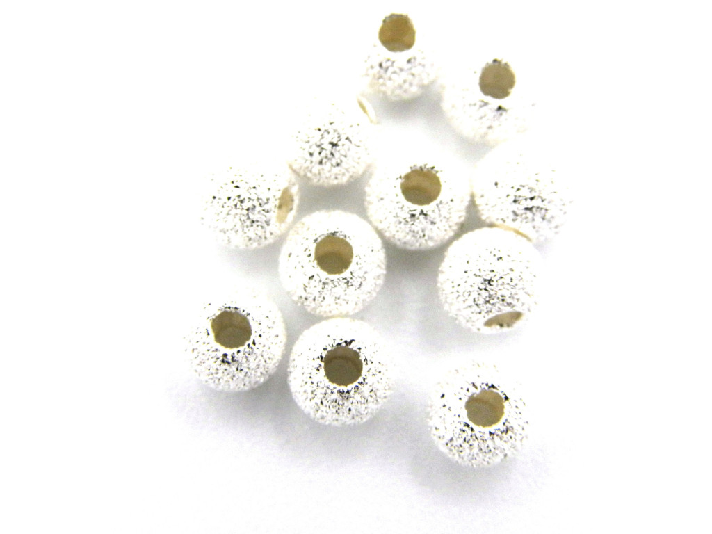 4 mm kleine runde Sterlingsilber-Perlen mit sandgestrahlter Oberfläche (5 Stk.)