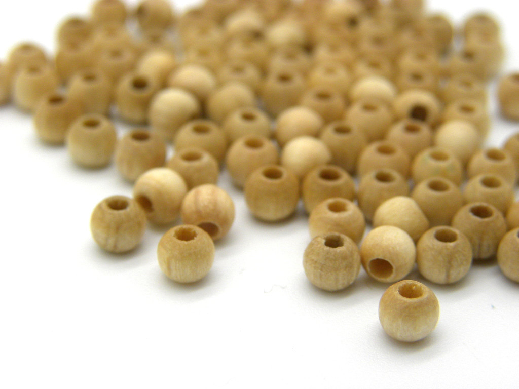 4 mm runde Mini-Holzperlen in Juwelierqualität - Natur (30 Perlen)