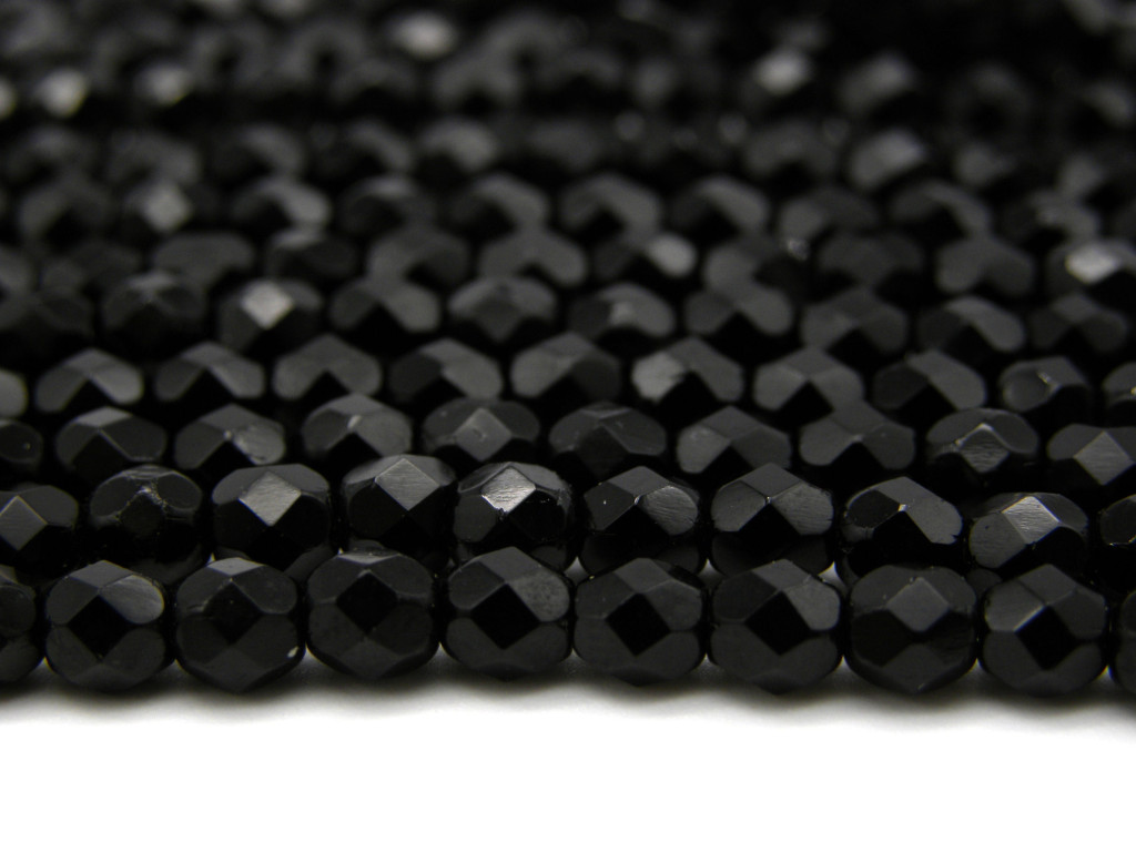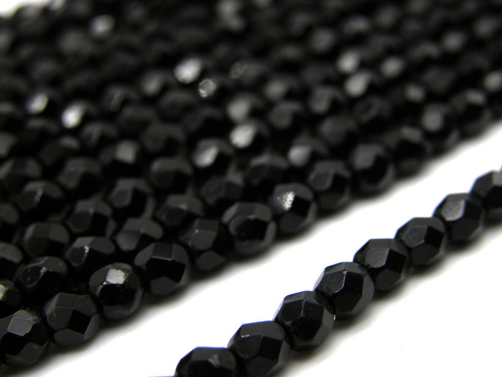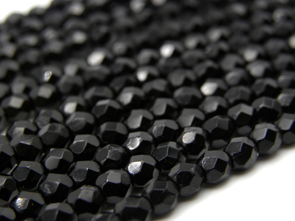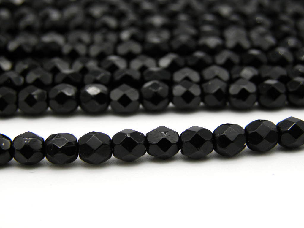 50 Stk. Tschechische feuerpolierte Glasschliffperlen 4 mm - Jet (Schwarz)